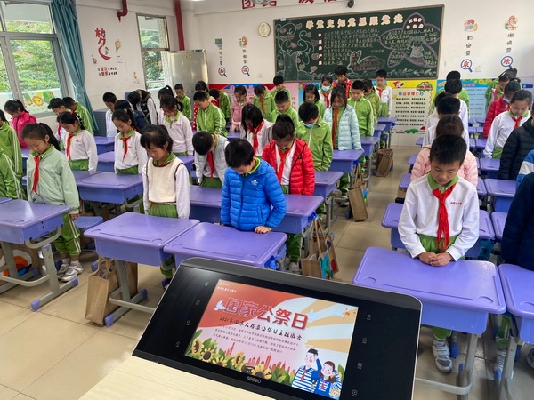 2021年12月13日是第八個國家公祭日。為了緬懷在84年前慘遭侵華日軍屠殺的遇難同胞們,讓同學(xué)們牢記歷史、勿忘國恥,當(dāng)日下午,開發(fā)區(qū)香暉園小學(xué)開展了國家公祭日主題班會活動。