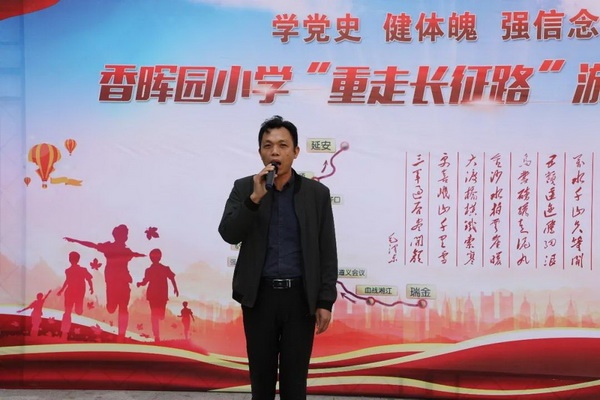 首先由主持人肖涵韻同學向全體師生簡要介紹了活動背景,隨后,香暉園小學黨支部書記歐陽祝棣宣布活動開幕。