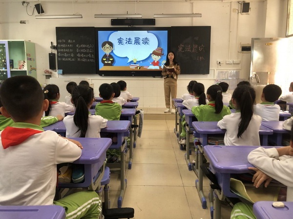 今年12月4日是第八個國家憲法日。為認真學習貫徹習近平法治思想,引導廣大師生進一步尊崇憲法、學習憲法、維護憲法、運用憲法,弘揚憲法精神、樹立憲法權(quán)威,12月3日上午,開發(fā)區(qū)香暉園小學開展了2021年“國家憲法日”憲法晨讀活動。