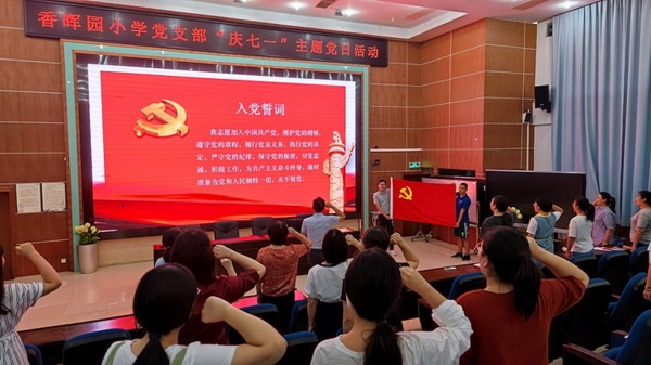 為熱烈慶祝中國共產黨成立101周年,回顧黨的百年光輝歷程,弘揚黨的光榮傳統和優良作風,7月1日下午,香暉園小學黨支部開展了“慶七一”主題黨日活動。黨支部副書記劉裕主持活動并講黨課,全體黨員教師參加了活動。