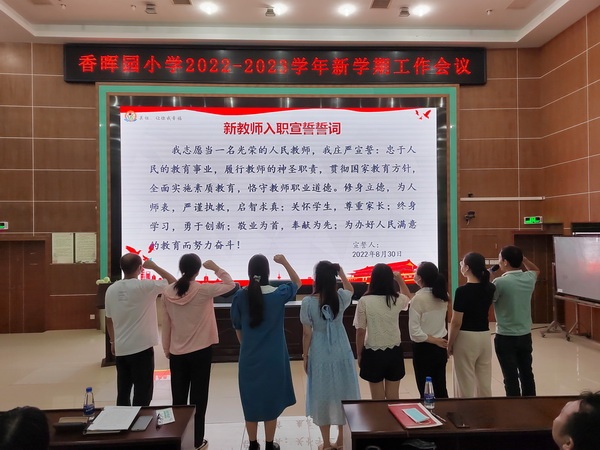 李端生主任帶領全體新入職教師進行宣誓,拉開了本次會議序幕。