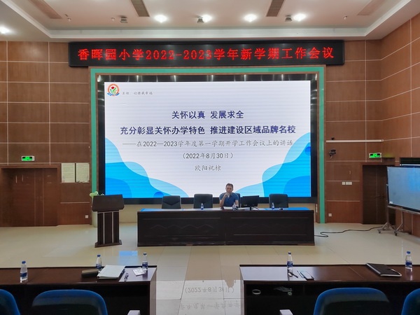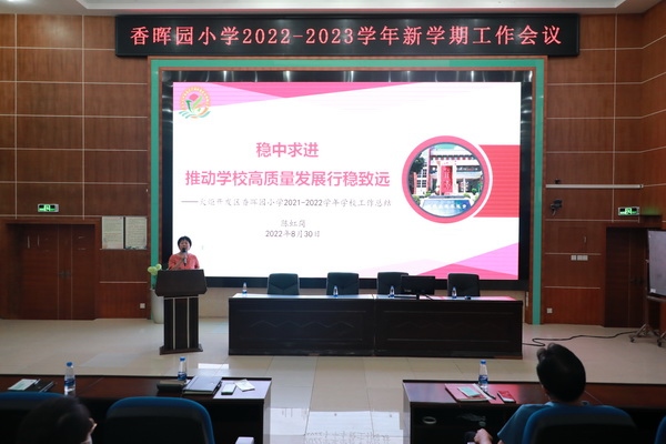 新學期,新目標;新起點,新征程。為推進學校新學期教育教學工作有序開展,8月30日上午,開發區香暉園小學在報告廳召開了新學期教師工作會議。本次會議由劉裕副校長主持,全體教師參加了本次會議。