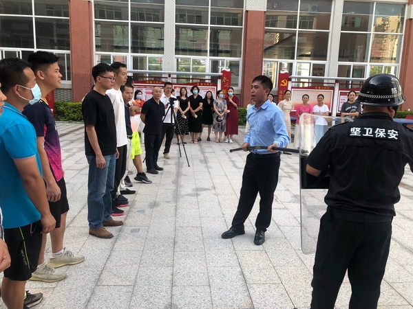 活動上,劉裕副校長作動員講話。劉副校長強調,校園安全工作十分重要,直接影響到學校的工作秩序和工作質量,全體教職工需要強化意識,以實際行動做好表率。全體教職工在陳教官的指導下,認真學習了防暴器械的構造、性能等基本常識;初步掌握了使用防暴器械的動作要領,為迅速處置突發事件奠定了良好的基礎。