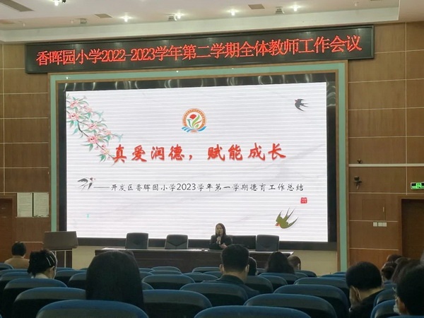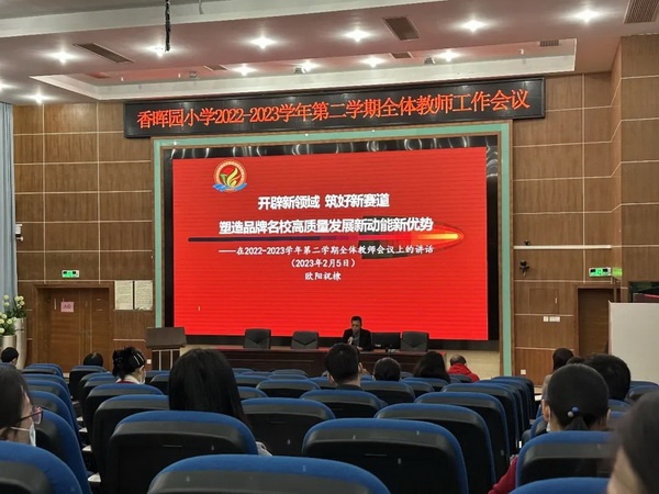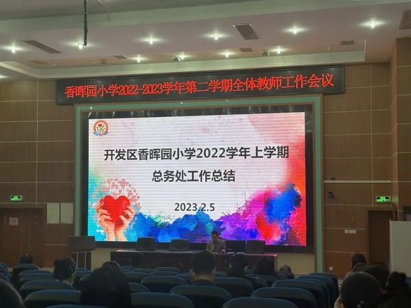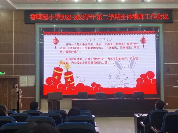 伴隨著兔年元宵節的喜悅,滿懷奮進新征程的豪情,2月5日上午,開發區香暉園小學在報告廳舉行2023年春季新學期教師工作會議,會議由行政辦副主任鄭清云主持。