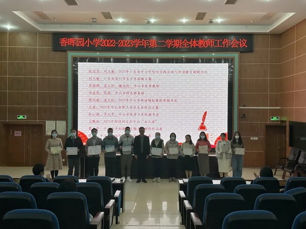 會議伊始,學校領導為上學期獲得市級以上榮譽的老師頒獎。接著,各部門負責人對上學期工作進行總結,并對本學期工作進行部署。