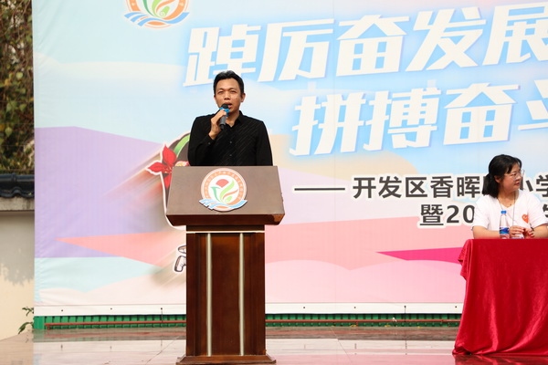 隨后,開發區香暉園小學校長歐陽祝棣對本次運動會表達了美好祝愿和期盼,希望孩子們能夠勇于挑戰,敢于拼搏,發揚“友誼第一、比賽第二”的體育道德風尚,服從裁判、公平競賽、賽出風格、賽出水平,展現良好的精神風貌,為班增光、為校添彩,并宣布本次運動會正式開幕,鼓舞人心的話語和鏗鏘有力的宣告迎來了陣陣掌聲。