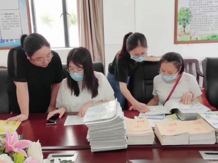 兩校教師在會議室一起翻閱了新苗學校四年級的學生作業。火炬二小教師通過查閱學生的《學習輔導》、作文本,以及數學和英語學科的部分作業,對新苗學校作業設計和批改要求有了初步的了解。孩子們一摞摞整齊干凈的作業本、認真工整的書寫和老師們用心細致的作業批閱得到了二小教師的肯定。特別是看到四年級學生歸類整理的數學和英語思維導圖后,二小的老師們贊不絕口,稱贊這種個性化的作業是落實“雙減”政策的有效途徑,同時對于訓練學生思維能力,培養動手能力、創作能力都起到了很好的作用。在郭主任的陪同下,二小教師還觀摩了一節體育課,李秋雄老師也陪同二小的綜合科組長巡查了課堂,老師們連聲感慨新苗的變化真大。