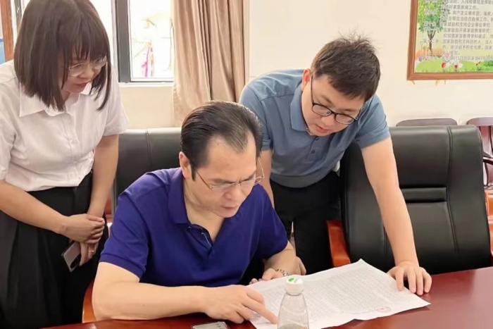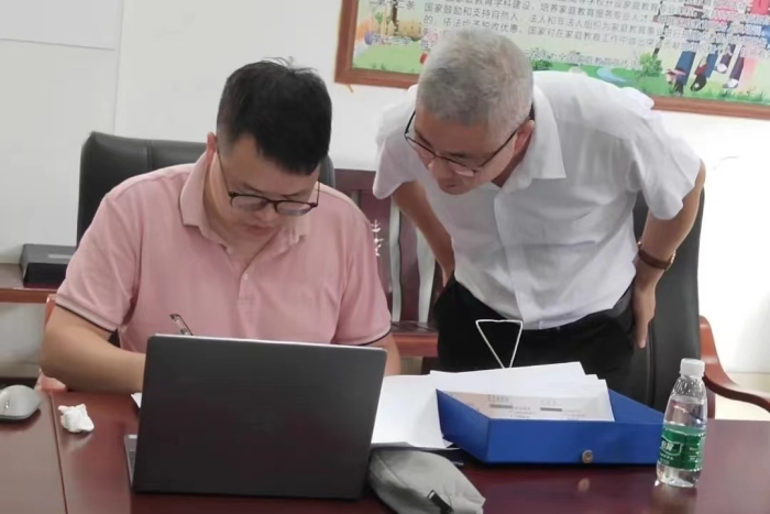 在新苗學(xué)校會(huì)議室,評(píng)估組根據(jù)考核方案進(jìn)行具體分工安排:詹必國(guó)、謝柏祥、孫湛、張立超四位專家負(fù)責(zé)聽推門課、隨機(jī)抽查學(xué)生作業(yè)。德育專干謝藝波負(fù)責(zé)查看德育相關(guān)資料、勞動(dòng)教育、師生問卷調(diào)查,葉斐老師對(duì)校園文化建設(shè)、各功能室進(jìn)行現(xiàn)場(chǎng)查看考評(píng)。田野、吳計(jì)亮、黃燕三位老師負(fù)責(zé)查看學(xué)校安全、健體美等相關(guān)資料,并對(duì)校園安保設(shè)施、美體工作進(jìn)行考核。