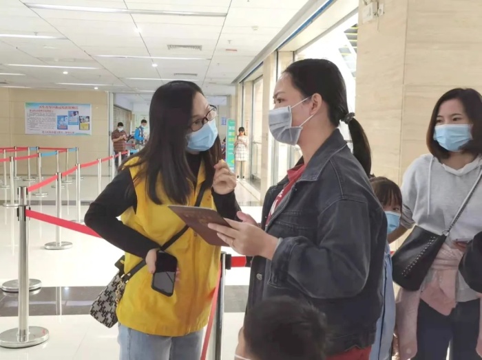11月13日早上7:30,鄒麗校長帶著新苗學(xué)校教師志愿者一行10人提前到達醫(yī)院,組織家長和學(xué)生有序排隊,協(xié)助醫(yī)護人員對學(xué)生接種信息進行一一查驗,耐心指導(dǎo)家長填報信息,幫助有困難的老人解決問題,安撫哭鬧的一年級小同學(xué),詢問留觀學(xué)生身體有無異常,提醒他們多喝水……為疫苗接種工作順利進行提供了保障。教育事務(wù)指導(dǎo)中心鐘海清主任和田野老師十分關(guān)心新苗疫苗接種情況,到現(xiàn)場指揮、協(xié)調(diào),就存在的問題及時和醫(yī)院領(lǐng)導(dǎo)有效溝通,使接種工作更加高效。