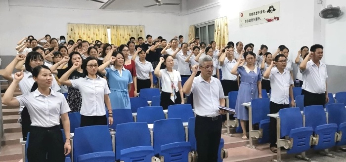 鄒麗校長(zhǎng)要求老師們積極落實(shí)“雙減”政策,提高課堂教學(xué)質(zhì)量,優(yōu)化作業(yè)布置,切實(shí)減輕學(xué)生的課業(yè)負(fù)擔(dān)。最后,全體教師在鄒麗校長(zhǎng)的帶領(lǐng)下莊嚴(yán)宣誓,并簽訂師德師風(fēng)承諾書(shū)。