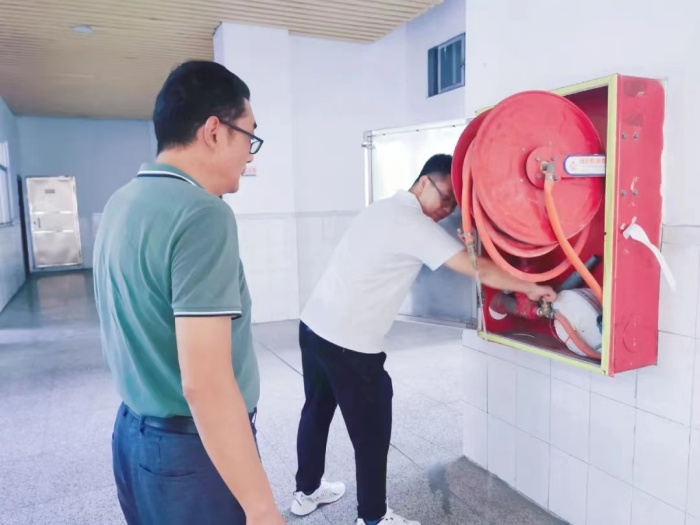 開學工作會議結(jié)束后,段岳華副校長、安全處俞希金主任對校園及周邊環(huán)境進行安全隱患大排查。段校長、俞主任對教室、圍墻、食堂、安保設施、消防、校車、功能室等重點部位進行仔細排查,確保無遺漏,做到安全“零隱患”。