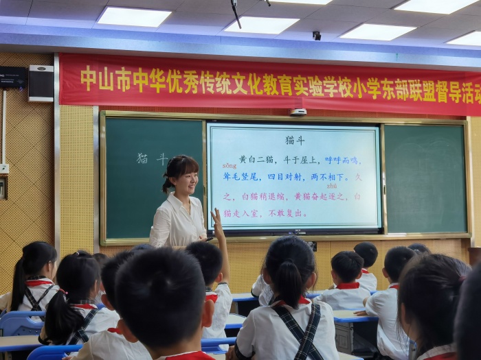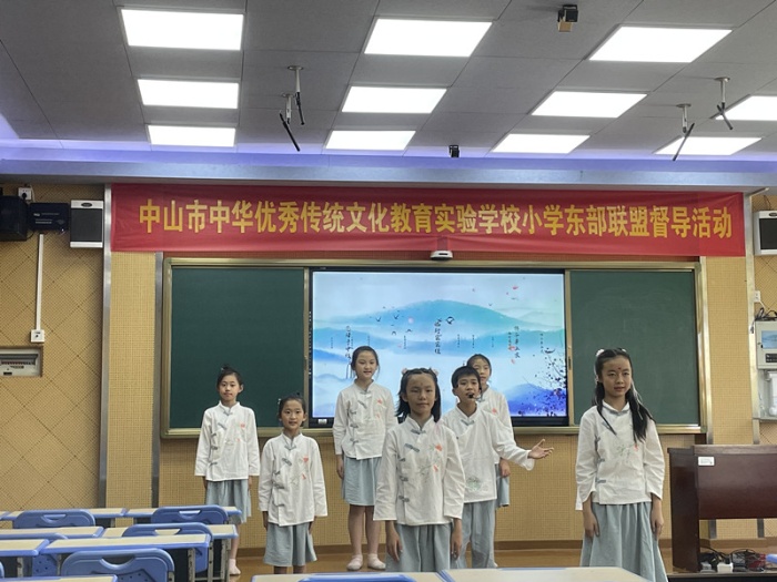 中華優秀傳統文化源遠流長,博大精深。近年來,開發區中心小學堅持黨的創新理論引領校園文化建設,積極推優秀傳統文化進校園,在傳統文化教育的整體規劃下,開發區中心小學的校園文化、課程建設、師資培訓和課題研究等方面工作開展扎實有效。作為中山市優秀傳統文化教育實驗學校,2022年5月17日,開發區中心小學接受小學東部聯盟督導活動安排。督導組專家晏利紅校長、梁麗娟主任和趙雪爽老師等蒞臨本次督導活動,開發區中心小學萬小兵副校長、黃艷芬副主任、傳統文化骨干教師和語文學科全體教師出席本次活動。