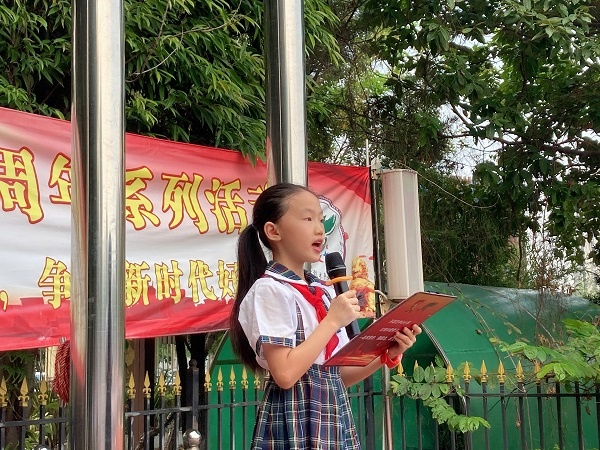 李品諾同學通過主題演講帶領同學們回顧了7月1日在慶祝中國共產黨成立100周年的大會上,敬愛的習近平爺爺莊嚴地向全世界宣告我們實現了第一個百年奮斗目標時振奮人心的時刻,帶領同學們回顧了中國體育健兒在東京奧運會上頑強拼搏、不懈奮斗、突破極限,打破紀錄、爭金奪銀、為國爭光的時刻。李品諾同學還向同學們介紹了在新冠疫情肆虐全球的形勢下,中國快速、有效地控制疫情,堅持人民至上,帶領全民抗疫,復工復產成為全球典范。幾天前,3名航天員在我們自己建設的空間站里度過了近3個月的時間順利返航。在9月25日晚上,被美國控制在加拿大的孟晚舟女士也回到了我們偉大祖國的懷抱。最后,李品諾同學滿懷激動地說:“作為新時代的青少年,我們必將努力學習,為國出力,請祖國人民放心!”