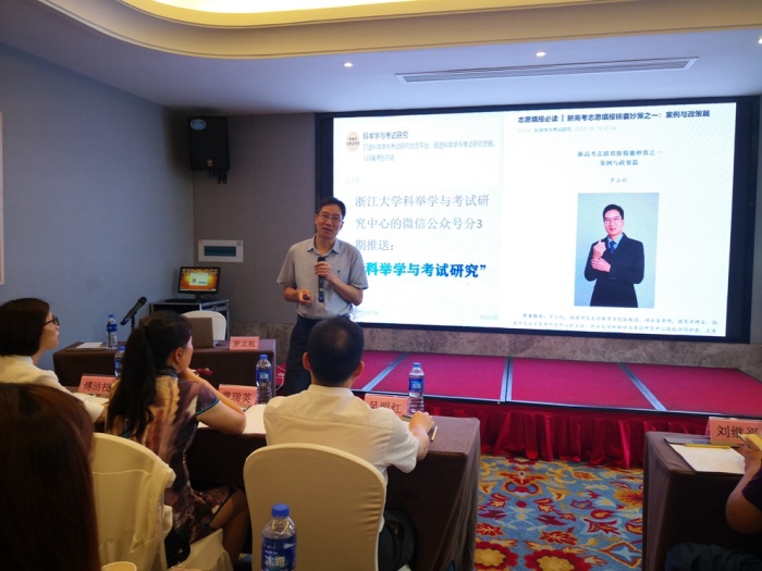 當天上午,福建師范大學羅立祝教授為學員們講授《新高考科目、內容與錄取改革研究》。羅教授通過大量詳實的數據分析說明新高考之所以新在何處,通過大量的表格,直觀形象地闡明新高考下從選科到教學、到高考錄取與報考的特點與策略。羅教授講課的內容立足于一線教師教育教學實際需求,讓培訓班老師們更加明晰新高考下的職責與使命擔當。