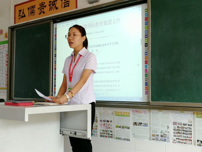8月26日上午的培訓由辦公室何景欣主任主持,在培訓開始之前,何主任首先傳達了集團《關于進一步做好新冠肺炎疫情防控和開學工作》的通知,要求所有老師做好疫情的防控工作,不要放松警惕。接著,何主任就《工資、福利標準及發放辦法》、《考勤制度》、《集團會議制度》以及《辦公室考核細則》做了培訓。