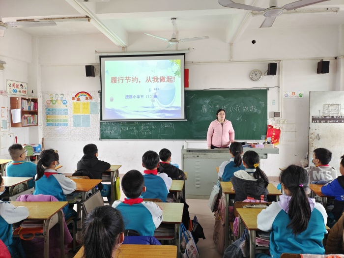 主題班會上,接源小學的同學們表現踴躍。首先,同學們列舉了學習、生活等方面的種種浪費現象;然后,交流討論改掉壞習慣的金點子,節約的小妙招,個別同學推廣自己的節約小發明;接著,在班主任的主持下的進行勤儉節約的問答競賽,普及節約知識,引導學生爭做勤儉節約的小先鋒,還讓個別學生講名人名家的勤儉故事等讓同學們認識到了勤儉節約的重要性,牢固樹立“節約光榮、浪費可恥”的觀點;最后全體同學發出倡議,號召大家身體力行,從我做起,從點滴做起,開展節水省電、愛惜糧食、節約學習用品等活動,踐行勤儉節約的美德。