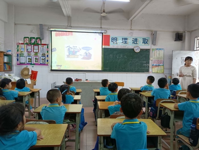 隨后,各班舉行了推普周的主題班會,讓在校的學(xué)生們繼續(xù)深化從小學(xué)習(xí)普通話、使用普通話的好習(xí)慣。特別是對于一年級的新生,由一年級各班語文老師在班級內(nèi)對學(xué)生進行校園常用普通話培訓(xùn),激發(fā)孩子說普通話的興趣,也教給孩子常用的普通話。