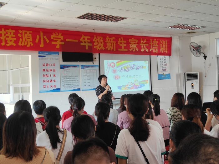 別過夏花絢爛,走進秋葉靜美,在這美好的季節里,接源小學又迎來了一年級的新生。為了使一年級新生初步了解自己的新學校,盡快適應小學生活,同時也讓新生家長了解學校教學理念和管理措施,搭建有效的家校溝通平臺,促進學校與家庭形成教育合力。經過精心籌備,接源小學于2022年8月28日上午成功舉辦了一年級新生及家長見面會。