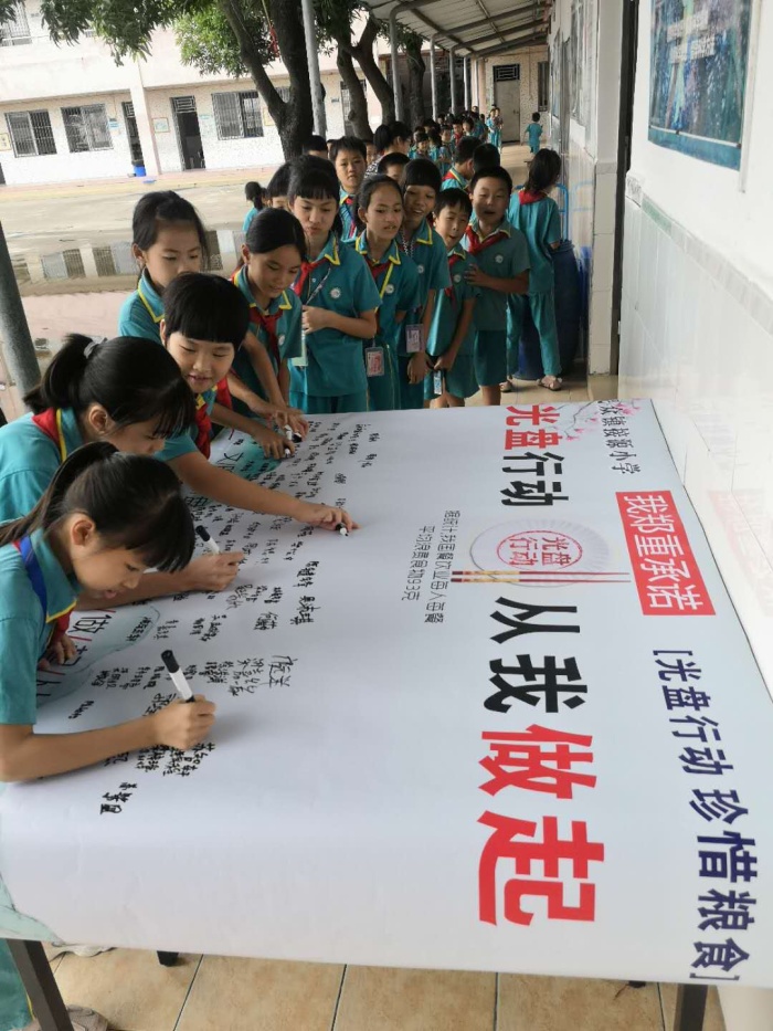 首先,接源小學大隊輔導員黃溶斌對全體師生進行“光盤行動,珍惜糧食,從我做起”提出倡議。其次,請同學們進行光盤行動倡議朗誦,激發學生熱情。再次,組織師生“光盤行動從我做起”的承諾簽名會,以表達自己對本次活動的決心。最后,本次活動圓滿結束,大家都表示自己會認真踐行光盤行動,做到勤儉節約、不浪費。