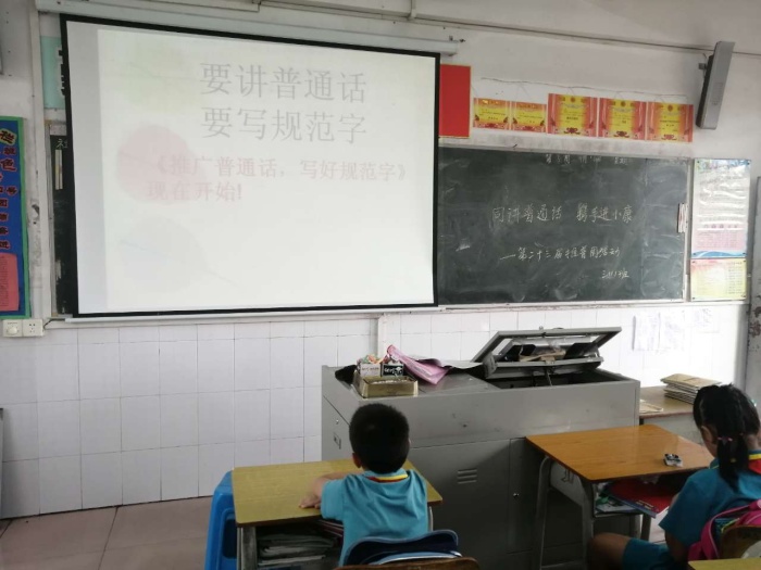 同時,繼續開展推普手抄報的制作,午間朗讀經典文字,練字等活動,并且利用了墻報等宣傳普通話。