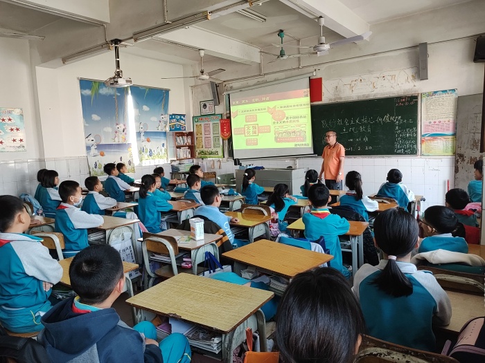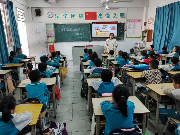 班會課上,老師通過PPT課件,分別從國家、社會、個人三個層面對社會主義核心價值觀做了詳細講解,讓同學們了解了什么是價值觀,我們需要什么樣的價值觀。號召同學們在成長成才的過程中,養成良好的道德行為規范,既要做中華傳統美德的傳承者,也要做以“富強、民主、文明、和諧;自由、平等、公正、法治;愛國、敬業、誠信、友善”為基本內容的社會主義核心價值觀的小小踐行者,長大后成為有擔當和責任感的社會棟梁。