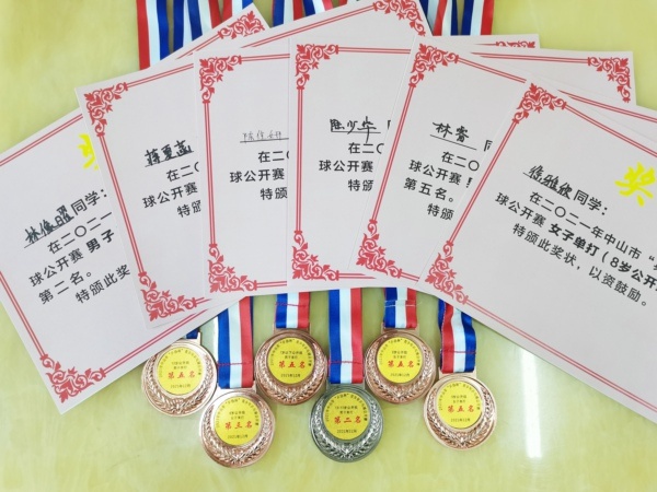 據(jù)了解,本次比賽錦標(biāo)學(xué)校乒乓球隊(duì)派出了27名運(yùn)動(dòng)員參加比賽,經(jīng)過兩天激烈的角逐;在教練員的精心指導(dǎo)下和運(yùn)動(dòng)員的頑強(qiáng)拼搏下,圓滿完成了自己的既定目標(biāo)。錦標(biāo)學(xué)校乒乓球隊(duì)在本次比賽中再創(chuàng)佳績,共有六位同學(xué)進(jìn)入各參賽組別前八名。其中林像曜獲得男子13至15歲組單打第二名;徐雅欣獲得女子8歲組單打第三名;陸少華獲得男子12歲組單打第五名;陳佳妍獲得女子9歲組單打第五名;蔣夏菡獲得女子8歲組第五名;林睿獲得男子7歲組第五名。