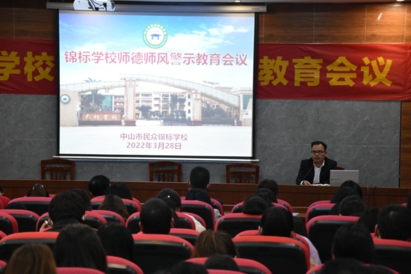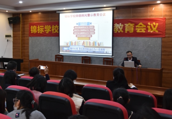 為推進學校師德師風建設工作,進一步提高教師的師德素養,3月28日晚7:00,錦標學校在科學樓一樓會議室召開師德師風警示教育會議,學校全體領導、教師參加會議。