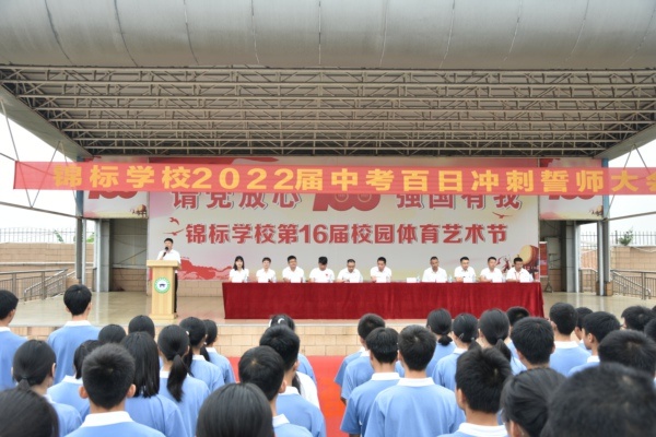 在《我相信》激情高亢的旋律中,陳德亮校長(zhǎng)、洪秋梅老師、張惠茵同學(xué)共同揭開(kāi)了中考倒計(jì)時(shí)幕布,中考倒計(jì)時(shí)100天的戰(zhàn)鼓正式敲響。少年有夢(mèng),砥礪前行;拼搏向前,無(wú)問(wèn)西東,全體八、九年級(jí)師生將繼續(xù)堅(jiān)定目標(biāo),砥礪前行,以堅(jiān)定的信念、科學(xué)的方法、勤奮的態(tài)度、精準(zhǔn)的備考,勠力同心,再續(xù)錦標(biāo)新輝煌!祝愿錦標(biāo)2022屆九年級(jí)學(xué)子中考圓夢(mèng),金榜題名!