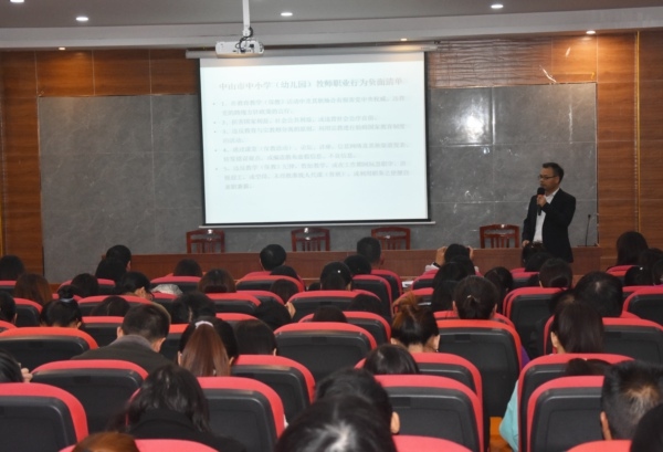 為進一步貫徹落實省、市關于加強師德師風建設工作要求,提升教師職業道德,規范教師從教行為,12月3日,中山市民眾錦標學校組織全體教師學習了《中山市中小學(幼兒園)教師職業行為負面清單(試行)》和《教育部公開曝光第八批8起違反教師職業行為十項準則典型案例》。