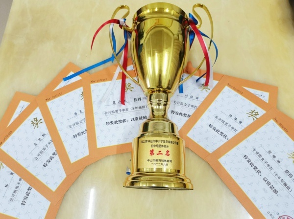 2022年中山市中小學生乒乓球公開賽于2022年6月25日—26日在中山市乒乓球館舉行,錦標學校乒乓球隊在76所中小學校中頑強拼搏,再創(chuàng)佳績。本次比賽共有7人進入各組別單打前八名,小學組榮獲團體總分第四名,初中組榮獲團體總分第二名。