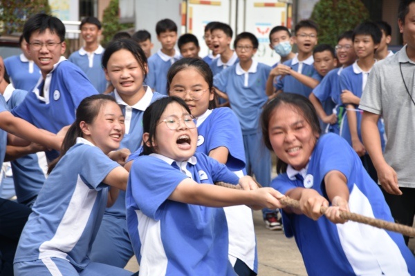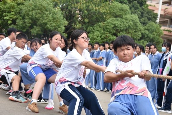 為豐富校園文化生活,增強班級凝聚力,提高學生團隊合作和堅韌不拔的精神,我校八、九年級還開展了拔河比賽。當比賽的哨聲響起,只見參賽的同學們緊握長繩,鉚足了勁拼命拼命往后拉。未參加的同學自發組成拉拉隊為比賽隊員吶喊加油,哨子聲、吶喊聲此起彼伏,現場激烈的比賽將整個活動推到高潮!比賽過程中,各班參賽隊員努力拼搏,無論是場上還是場下,氣氛都異常激烈。現場拉拉隊員個個熱情高漲吶喊助威給比賽增添了一抹亮色,每一聲吶喊都帶來一股力量。經過一番激烈的角逐,同學們灑下了汗水,收獲了希望 。拔河比賽提高了同學們的團隊合作意識和堅韌不拔的精神。尤其是在勝負難分的時刻,大家毫不退卻,咬緊牙關,堅持到底。賽場上的同學們個個斗志昂揚,他們頑強的毅力與拼搏的精神讓每一個人感動。希望他們能夠繼續發揚堅毅的精神,以飽滿的熱情備戰期末考試。