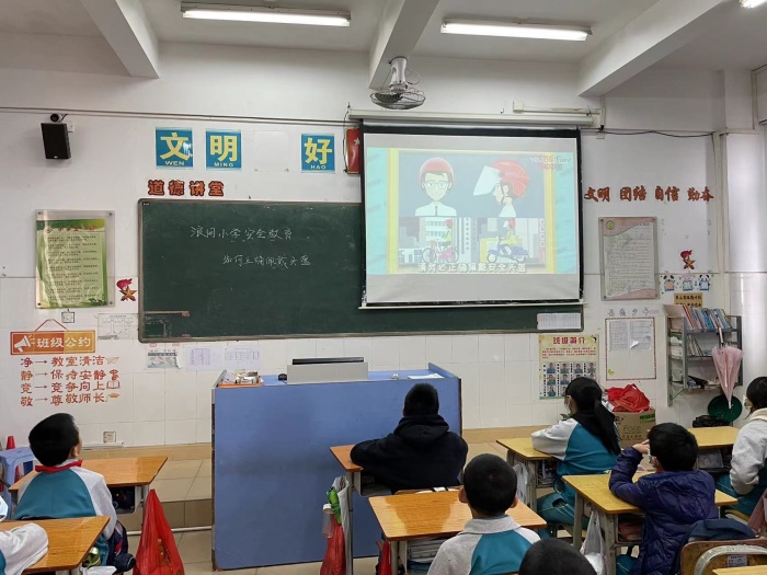 學校還利用校園廣播、國旗下講話、校園LED、學校宣傳欄、班級宣傳角、班級微信群等向師生宣講相關的交通安全知識。
