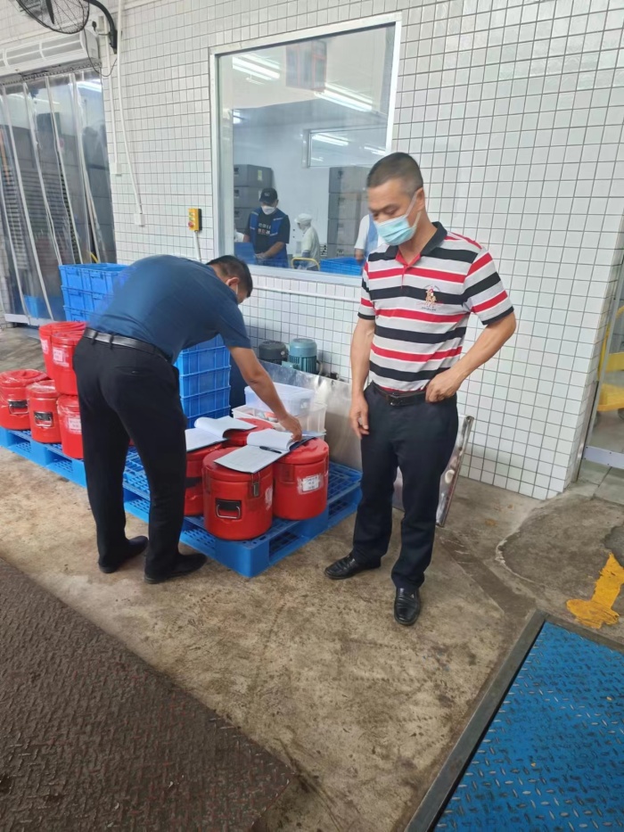 安全工作向來(lái)是民眾浪網(wǎng)小學(xué)的重點(diǎn)工作,食品安全更是重中之重,也是倍受家長(zhǎng)和社會(huì)關(guān)注的話題,供應(yīng)商配送的食品是否符合衛(wèi)生要求,直接關(guān)系到廣大師生的身體健康,不容絲毫馬虎。為了保證學(xué)校配餐質(zhì)量,加強(qiáng)對(duì)配餐工作的日常監(jiān)督,3月21日上午,浪網(wǎng)小學(xué)校長(zhǎng)陳平、副校長(zhǎng)梁桂華、總務(wù)主任黃品純、總務(wù)副主任溫明貴以及兩位教師代表對(duì)百順餐飲服務(wù)公司進(jìn)行突擊檢查,以確保學(xué)生就餐的食品安全。