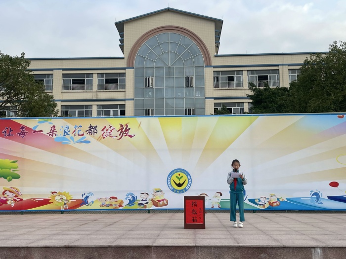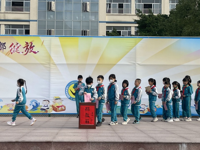 接著,少先隊輔導員黃曉靜老師發出真誠倡議,希望同學們積極參與中山市2023年慈善萬人行捐款活動,為急難救助、敬老助殘、關愛弱勢群體、發展教育事業等奉獻愛心,慷慨解囊,同建幸福美好家園,共促社會文明進步。