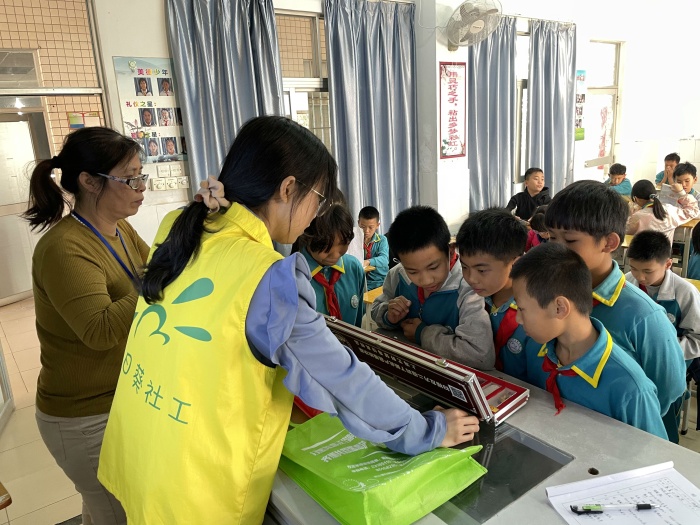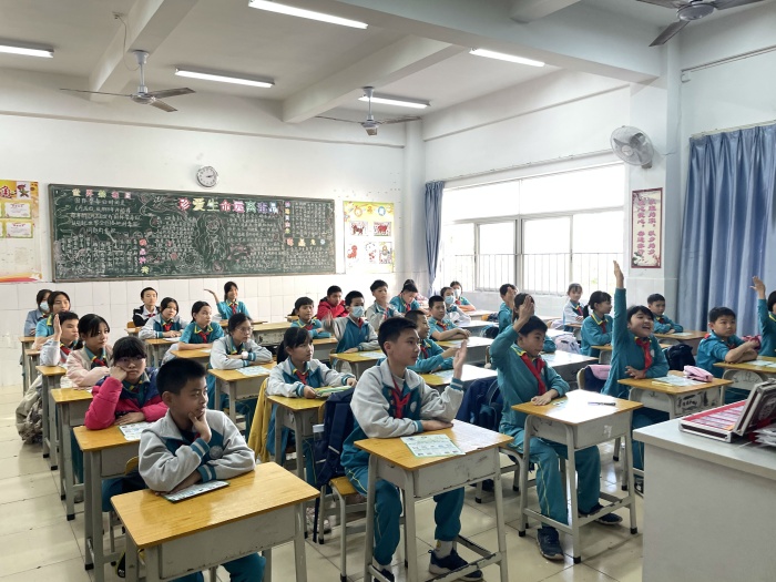 禁毒社工通過結合課堂授課和視頻觀看進行禁毒知識講解,為六年級五班的同學們帶來了一場禁毒教育通識課。在課堂上以禁毒知識宣講、禁毒知識問答、禁毒宣誓的形式來為班級同學宣傳禁毒知識,更有拒毒情景動畫視頻,教導學生防毒拒毒的技巧。在課堂上,積極舉手進行毒品知識問答,有同學在分享環節講道“在本次課堂,學到了很多毒品的知識,毒品對人的影響是很嚴重的,我們要遠離毒品,對毒品說“不”。