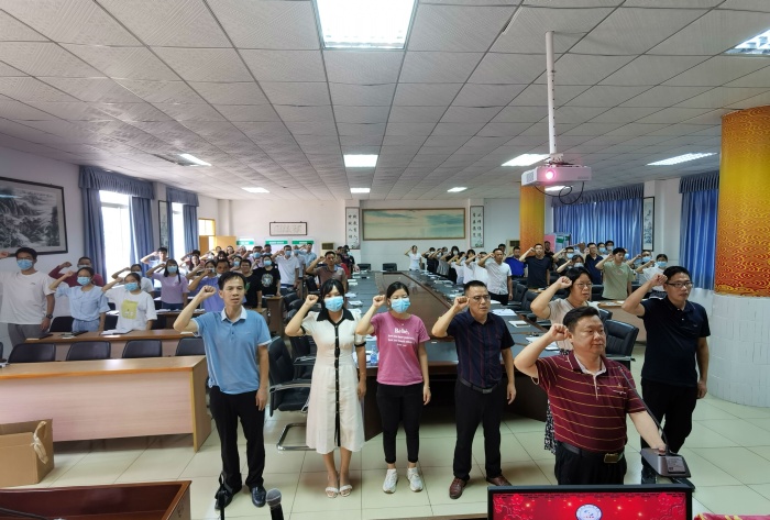 最后,全體老師宣誓新學期的誓言。忠于職守,以身作則。為人師表,言傳身教。腳踏實地,刻苦鉆研。認真備課,提高效率。燃燒激情,樂于奉獻。精誠團結,勤勉敬業。為三民學校的進步發展貢獻力量!