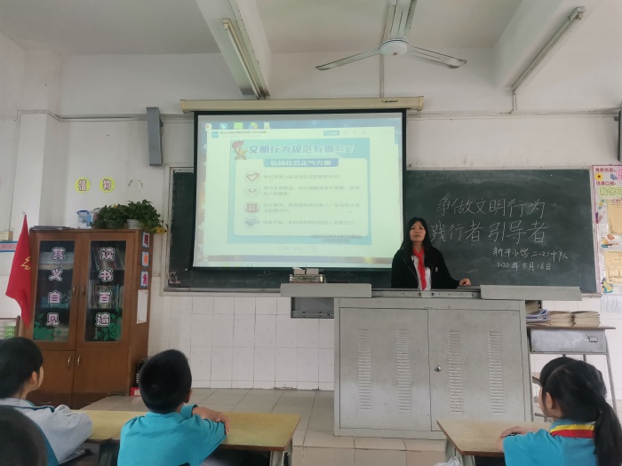 活動首先由紅領巾宣講員梁樂怡同學利用國旗下講話進行宣講。梁樂怡同學向全體師生談了自己對《中山市文明行為促進條例》實施的看法,鼓勵全體同學要積極學習條例,積極履行條例所要求的內容,做一個文明守禮的好孩子。下午的班隊課,各班主任向孩子們詳細宣講條例的內容。班主任從弘揚社會正氣、公共場所文明禮儀、維護公共環境衛生、維護交通安全與秩序文明出行、維護城鄉社區公共文明、旅游或出國(境)時、維護醫療秩序、踐行健康環保綠色發展理念、維護網絡文明等方面進行了宣講。此后,各班利用微信向家長推送,讓家長也了解條例,齊齊做一個文明的中山人。