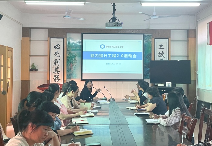 為促進信息技術與教育教學融合創新發展,推動全校教師信息技術應用水平的提升,迎接中山市信息技術應用能力提升工程 2.0 整校推進工作,2022年4月6日下午,“新平小學能力提升工程2.0啟動儀式”在新平小學會議室舉行,學校副校長湯斌英主持,全校老師參加。