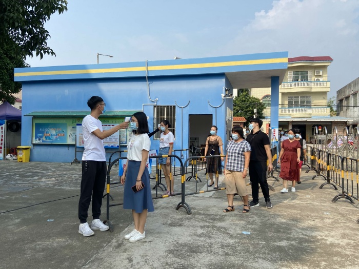 演練堅持“演練即是實戰”的要求,落實落細各項措施。陸銳勛校長為本次演練的總指揮。本次演練分為4個流程。;流程一:校車上學、放學應急演練。24個班主任扮演學生,分2路縱隊依次排隊測溫上下車。流程二:監測體溫,學生排成2路縱隊,梁曉靜、吳宇恒負責測量學生體溫,體溫正常方可入校。學生間隔1米排隊依次接受檢測;體溫正常者直接回教室,不要停留。假如發現有學生出現發燒癥狀(體溫37.3℃)值日行政馬上請她到臨時觀察室休息,通知該班主任打電話叫家長把孩子送到民眾醫院發燒門診部就診。流程三:午休測溫和上課出現異常應急演練;在上課期間發現學生提出身體不適,經簡單詢問和測量體溫,如有發燒立刻打電話給班主任,帶學生離開課室,到臨時觀察室處置。對全班學生逐一進行體溫檢測,確認均無異常后,由上課老師帶領學生由疏散專用通道離開,到備用課室上課。梁兆元主任通知消毒員室外拉起警戒線,并對課室周邊及專用通道進行消毒處理。