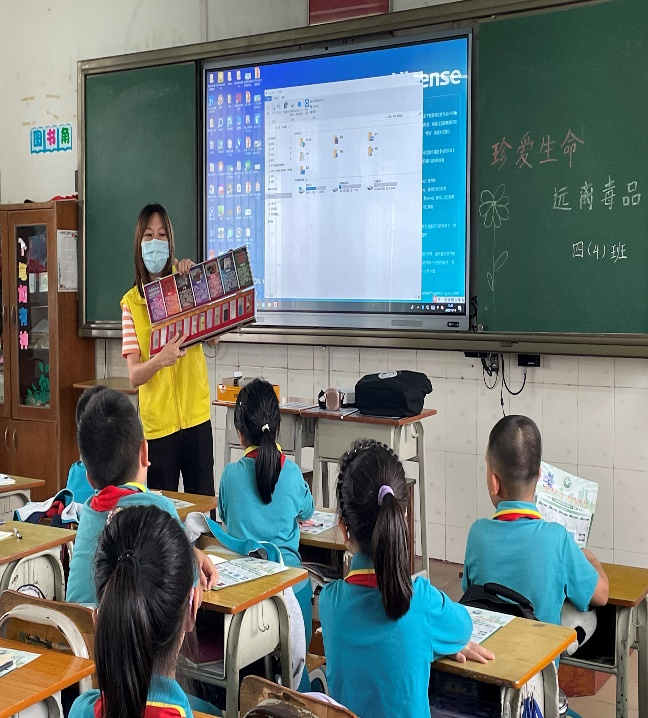 隨后,中山市強(qiáng)制戒毒所周虹警官、中山市向日葵社會(huì)工作服務(wù)中心志愿者分別對(duì)學(xué)生進(jìn)行有獎(jiǎng)問(wèn)答環(huán)節(jié),鞏固毒品防范意識(shí),學(xué)生積極參與其中,從中學(xué)到了很多禁毒知識(shí)。最后,周警官帶領(lǐng)全體學(xué)生進(jìn)行了莊嚴(yán)的“禁毒”宣誓儀式。