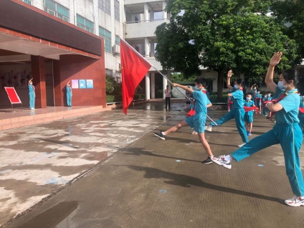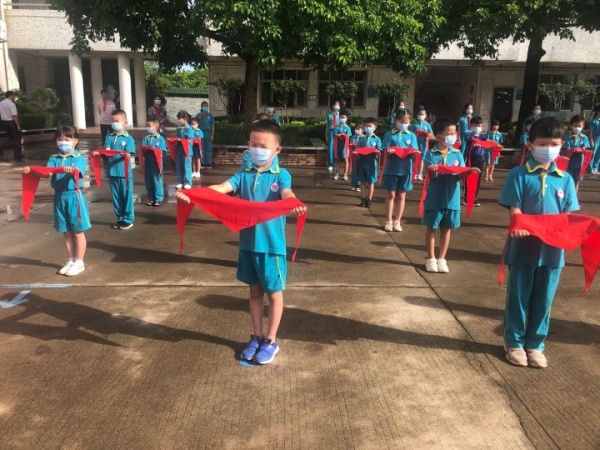 為迎接這次入隊儀式的到來,學校大隊部組織一年級的小朋友們開展了有效的隊前教育,了解紅領巾、隊旗、隊徽、隊禮、呼號及其意義,學唱《中國少年先鋒隊隊歌》,達到"六知、六會、一做"的入