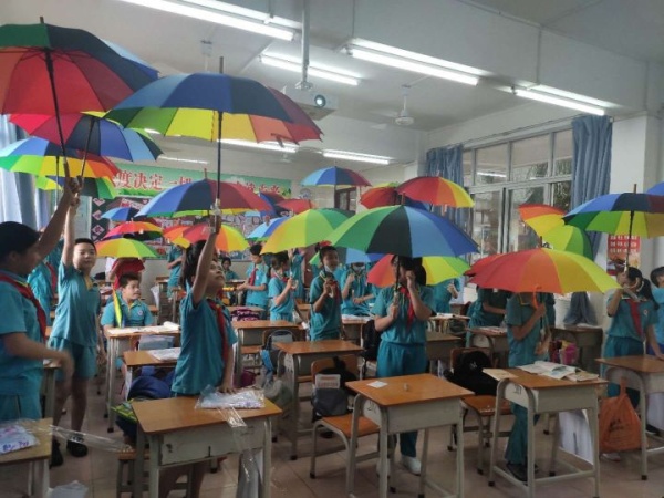 下午,各班開展《五彩的六一》活動,先是各班進行征集“我的小心愿”活動,孩子們圍繞國家發展和社會建設相關主題(如社會風尚、城市發展、鄉村振興、傳統文化、教育科技、生態環保等),圍繞創新開展少先隊活動(如“爭做新時代好隊員”、社會實踐、志愿服務、夏冬令營等),圍繞少先隊員健康成長(如體育鍛煉、勞動教育、文化活動、安全自護、身心健康等),圍繞少先隊組織改革發展等,以文字的形式寫下來,然后互相分享,也有的張貼在心愿墻。然后各班開展活動,有的看電影,有的在班內開展小游戲。活動結束時,學校送給每個學生一把“五彩傘”,希望每一個孩子都有一個五彩斑斕的童年。