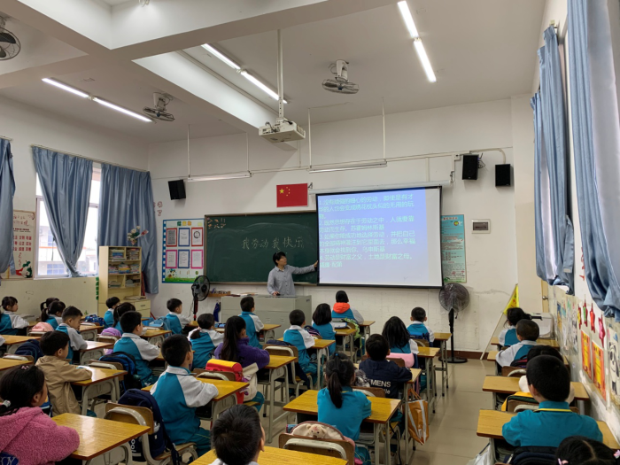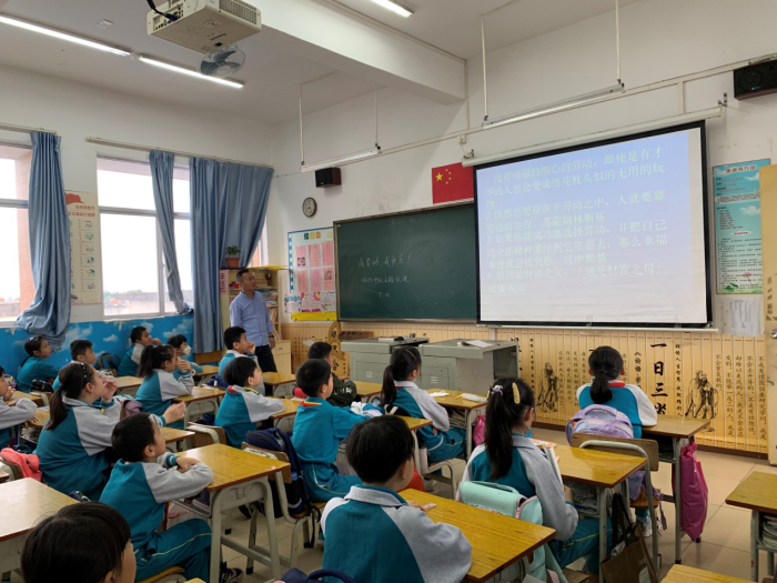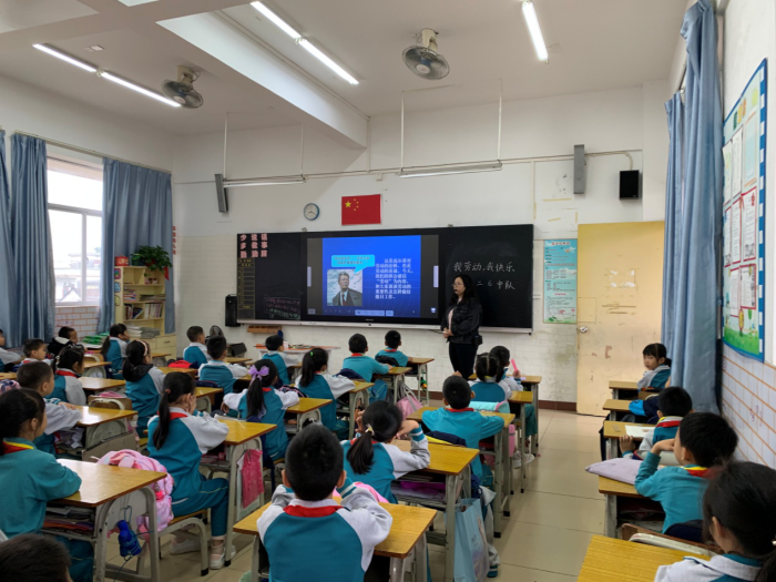 隊課活動伊始,中隊輔導員首先從闡述“勞動在人類進化史上的重要性”“做好校園里的值日”“讓我們的教室更美麗”等方面,給學生上了一堂勞動教育課。