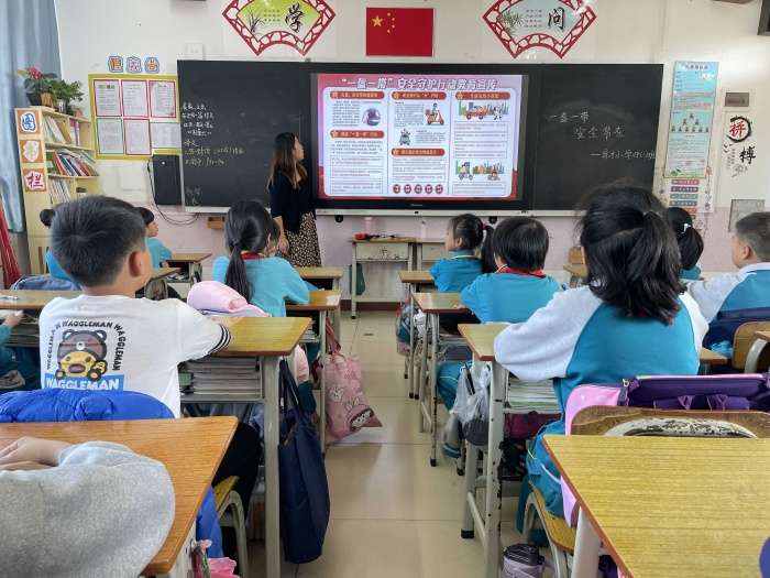 為了進一步做好學校交通安全教育工作,切實增強學生及家長的交通安全意識,近日民眾街道育才小學陸續開展了“一盔一帶,安全常在”一系列的交通安全教育工作。