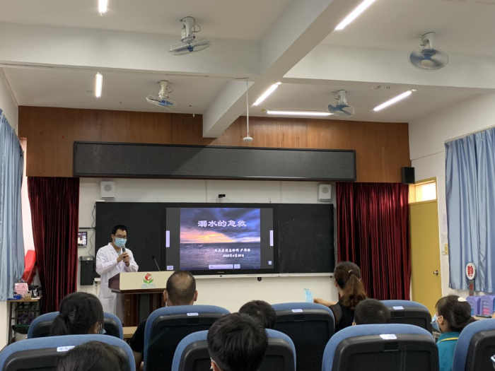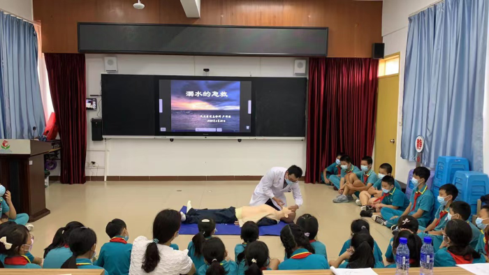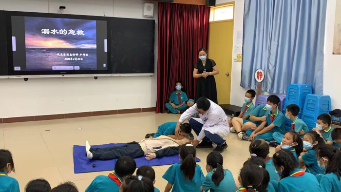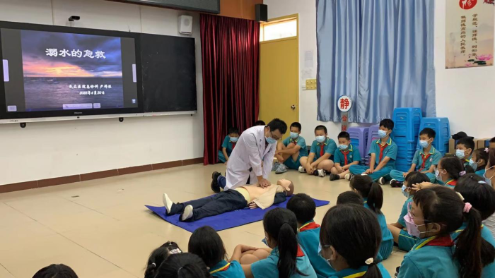 天氣逐漸炎熱,暑假即將到來,青少年溺水事故進入易發期、高發期。為進一步做好校園防溺水宣傳教育工作,增強學生防溺水安全意識,有效防范學生溺水事故的發生,2022年6月30日下午,民眾醫院急診科醫生在走進育才小學,為師生講解防溺水安全教育知識并現場進行了培訓。
