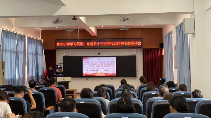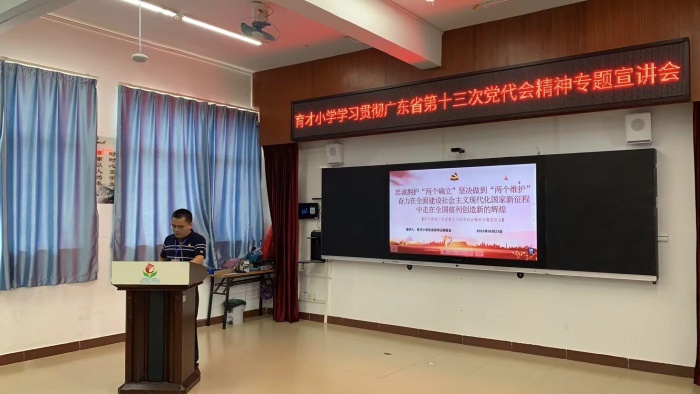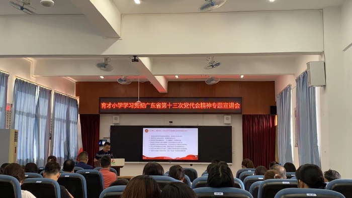 6月23日下午,育才小學(xué)黨支部在學(xué)校會(huì)議室召開(kāi)教師大會(huì)進(jìn)行專(zhuān)題宣講,深入學(xué)習(xí)宣傳貫徹廣東省第十三次黨代會(huì)精神。學(xué)校黨支部書(shū)記、校長(zhǎng)胡留全上專(zhuān)題黨課,全體教師參加會(huì)議。
