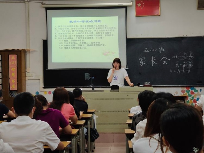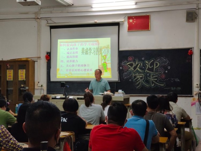 然后,各班主任和學(xué)科老師分別介紹班級的情況,包括學(xué)習(xí)情況、行為習(xí)慣等,并向家長介紹了一些實用的家庭教育方法,以及需要家長配合的工作,提醒家長平時要管理好學(xué)生使用手機和電腦、觀看電視節(jié)目等的時間,讓孩子養(yǎng)成良好的習(xí)慣。