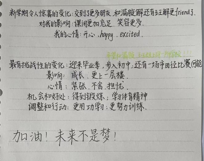 新學期、新變化、心啟航,通過此課的學習,讓同學們深刻認識要以積極的心態面對新學期的新變化,面對有挑戰性的變化時,不僅要看到它帶來的機會和好處,還要能做出積極的調整和行動。