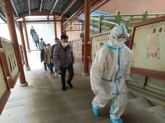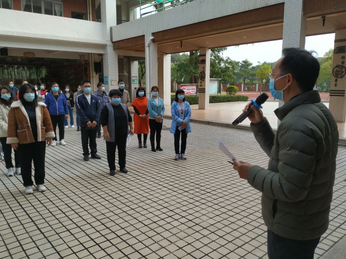 演練由甘金鳳校長為總指揮,本次應急演練模擬以甘校長接到通報,二年級某班某同學為新冠肺炎病例的次密切接觸者為前提背景。發生疫情后,學校啟動應急預案,展開一系列的應急響應、指揮調度、現場組織等方面的演練。