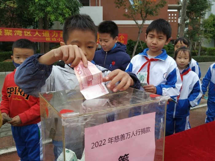 為了弘揚和傳承中華民族的優(yōu)秀美德,培養(yǎng)學生樂善好施的義行善舉,激發(fā)廣大學生無私奉獻、互助友愛的社會責任感,12月31日上午,在新年的鐘聲敲響前夕,欖邊小學全體師生在運動場上隆重舉行“慈善萬人行”師生愛心捐款活動,大家紛紛捧出一份關(guān)懷,獻上一片愛心。